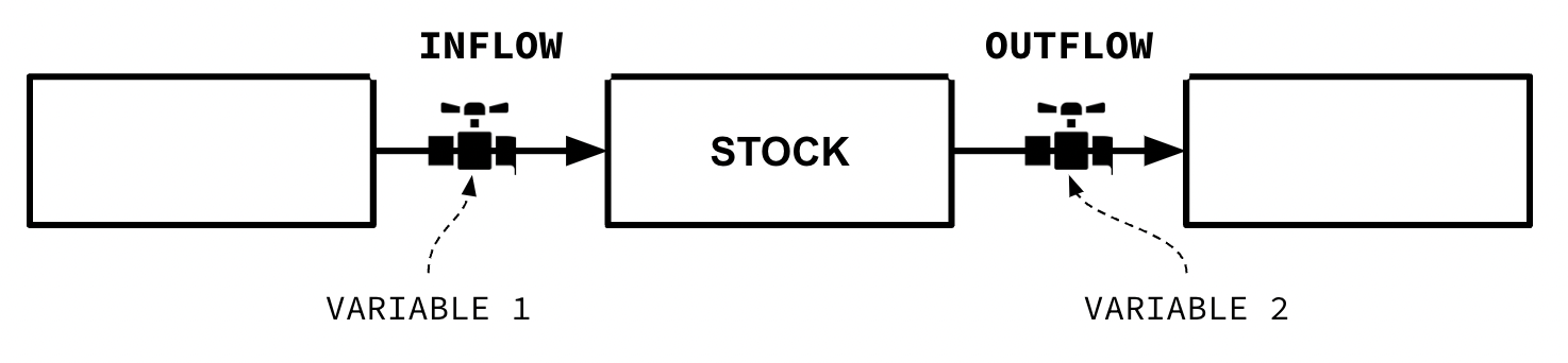 Flows —> stocks change over time through the actions of a flow. There can be inflows and outflows. Every flow is a rate, whereas every stock is a quantity.