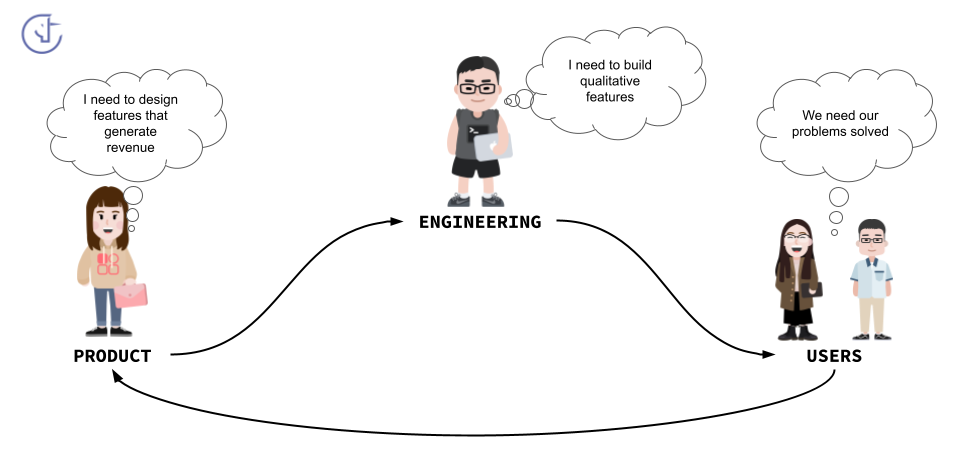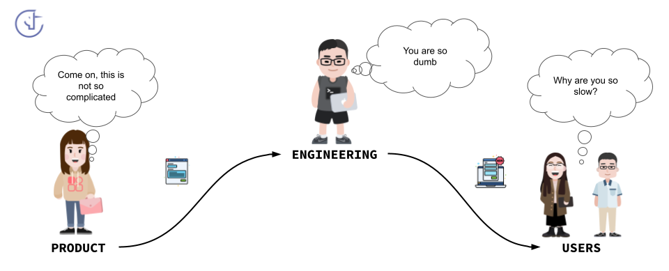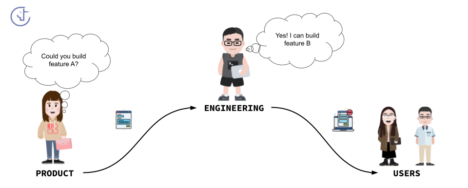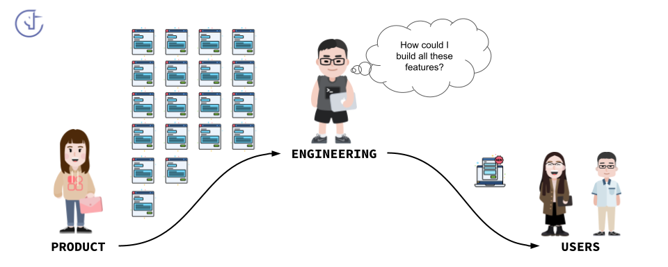 Ce scénario, lorsqu’il se répète, survient souvent quand les ingénieurs sont peu, voire pas du tout, impliqués dans la conception produit. À mesure que l’entreprise grandit, la séparation entre product et engineering s’accentue, et les individus se retrouvent cantonnés à créer ou exécuter des tickets.
